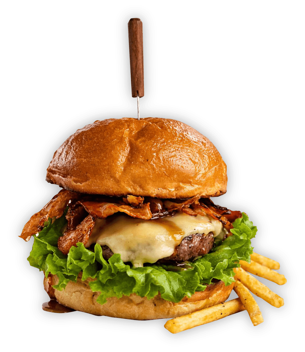 Molida de Rib eye/queso gouda/tocino/jarabe de maple.